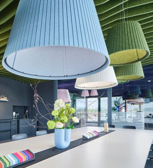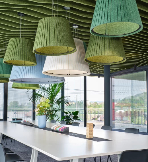 Подвесной акустический светильник MERANO воплощает гармонию элегантности и функциональности. Его изысканный абажур, выполненный в нежных цветовых решениях, придаёт интерьеру утончённость и современный шарм. Уникальные акустические свойства светильника способствуют снижению уровня шума, делая его идеальным решением для офисов, ресторанов и жилых пространств. Тонкие подвесы для монтажа светильника создают иллюзию лёгкого парения, подчёркивая его современный и лаконичный дизайн.